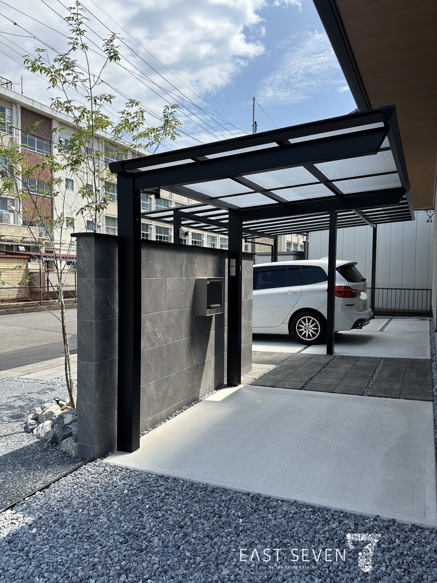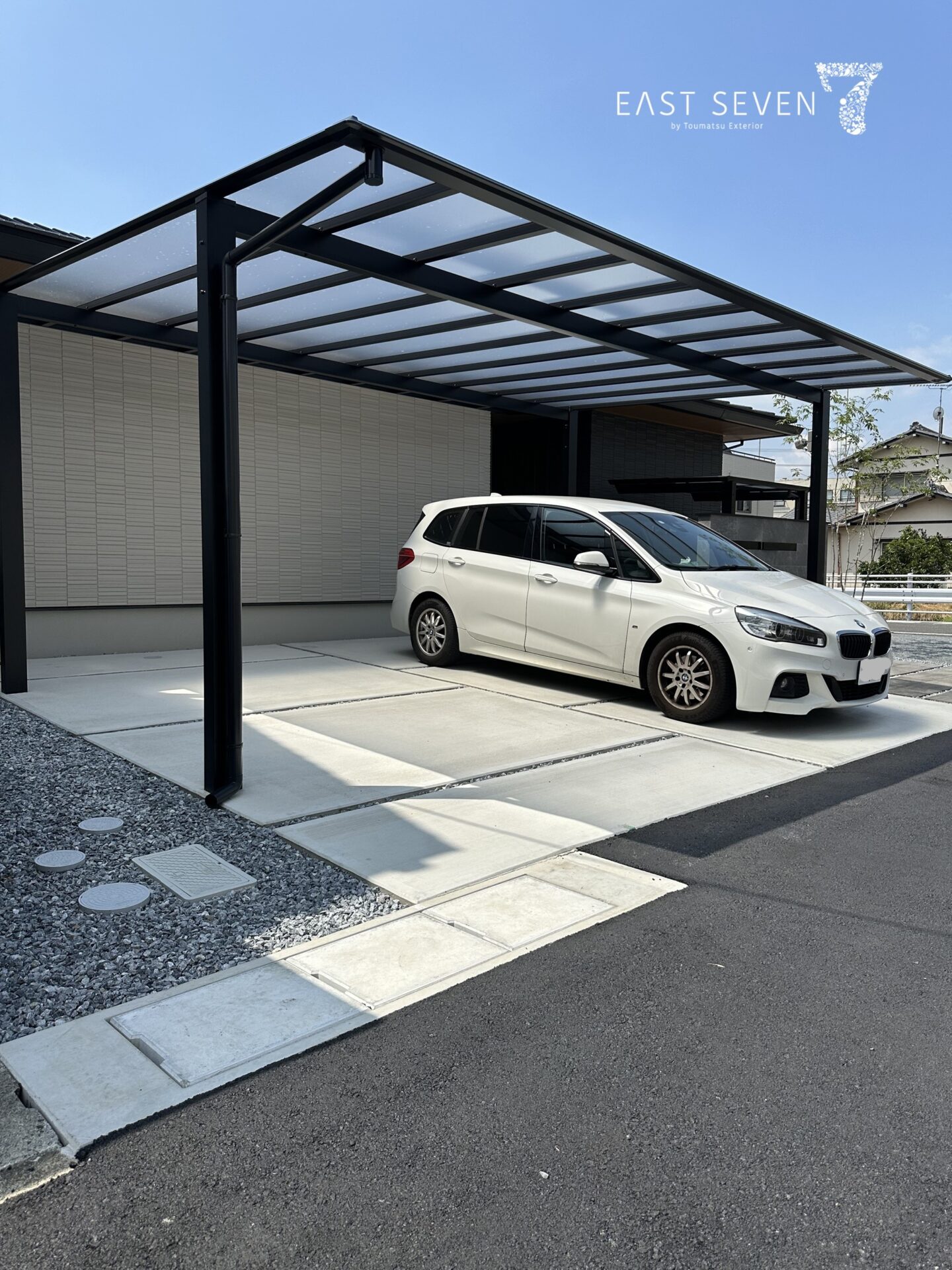 ブラックとホワイトで魅せる外構